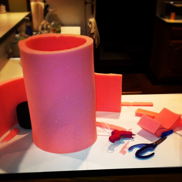 photo 11 Published December 17, 2012 at 640 × 640 in Ninjago Costume Started with 1 inch thick foam. I added a 1.5 inch thick piece inside to “hug” his head. (there is a super cheap foam place on Franklin and 18th… Heart of Texas Foam & Fabric)